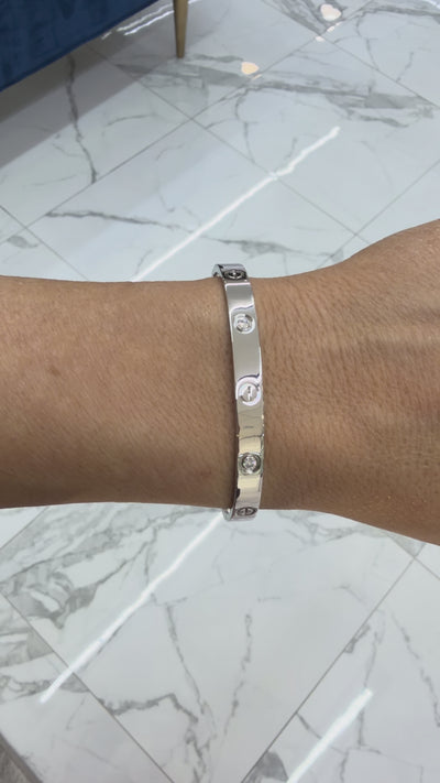 Cartier Love Classic Model 4 Diamonds 18K White Gold Iconic Bangle Bracelet