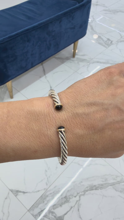 Men’s David Yurman 14K Gold & 925 Silver 6MM Onyx Cable Cuff Bangle Bracelet