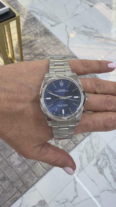 2018 Rolex Oyster Perpetual 39MM 114300 Blue Dial Oyster Stainless Steel Watch