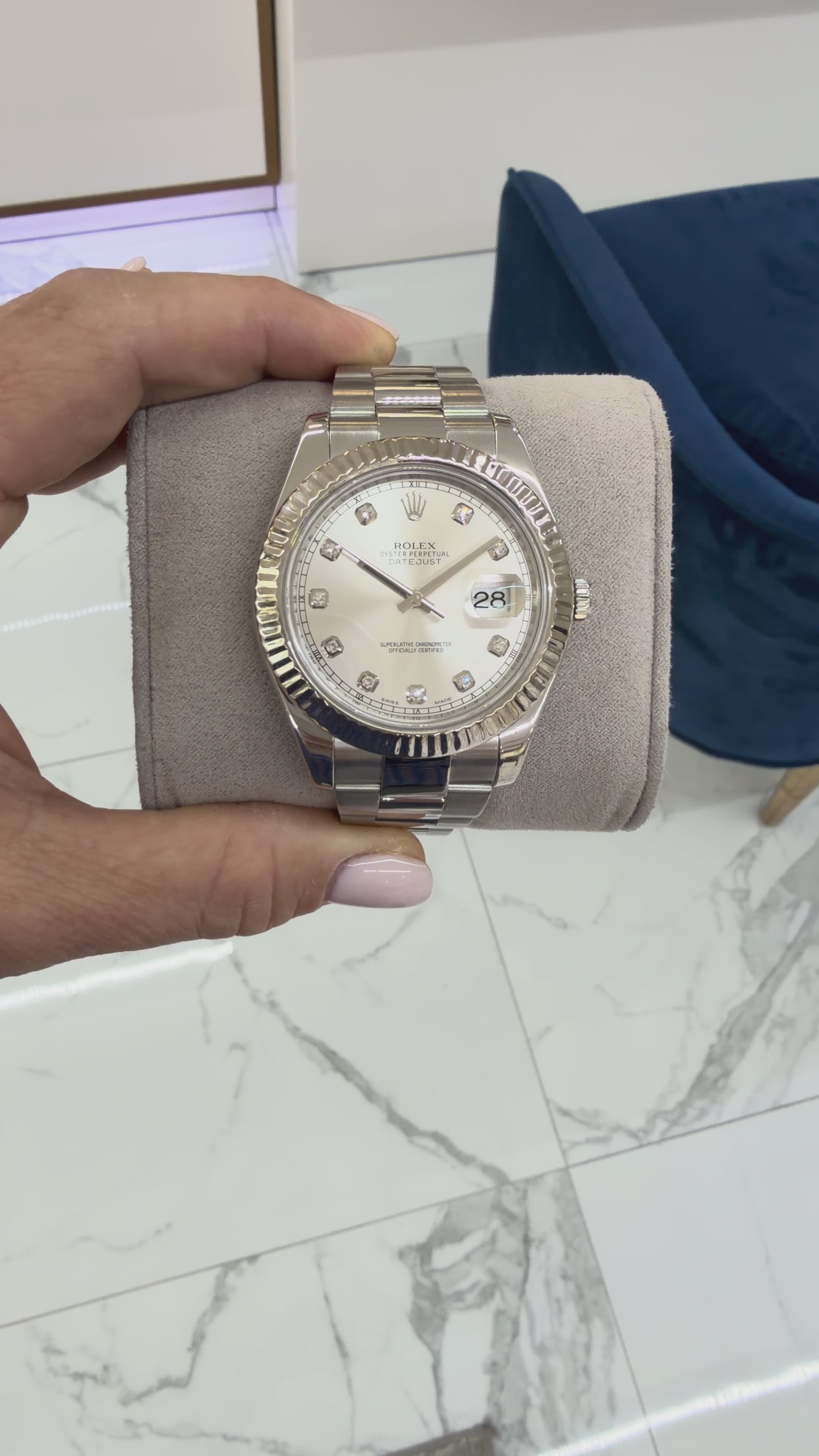 Rolex Datejust 41MM 116334 Fluted Oyster Silver Diamond Dial Steel Watch