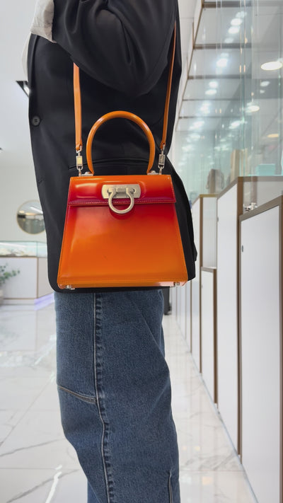 Salvatore Ferragamo Iconic Top Handle 212193 Leather Airbrush Orange Bag