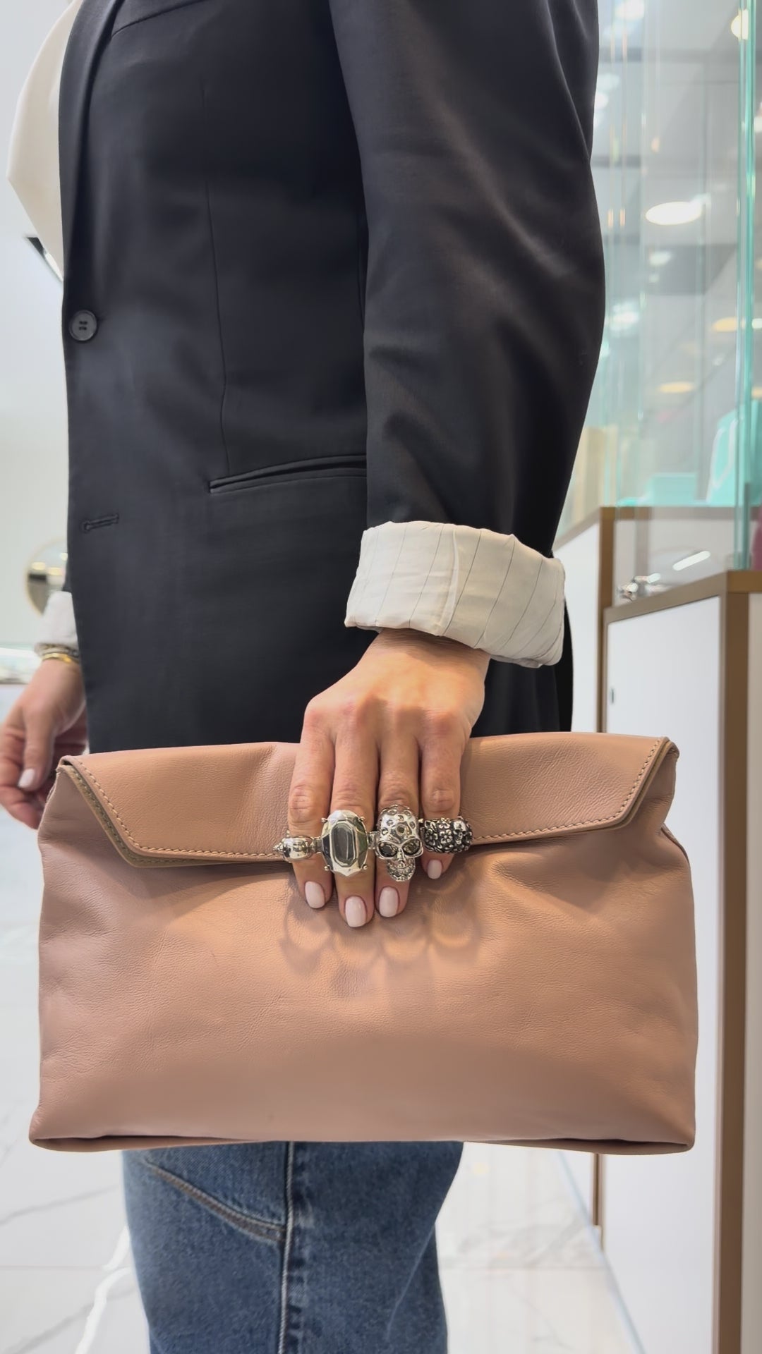 Alexander McQueen Rose Pink Skull Jewel Four-Ring Soft Leather Clutch Bag