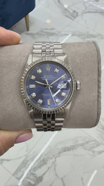 Rolex Datejust 36MM 16030 Blue Diamond Dial Jubilee Fluted Steel Watch