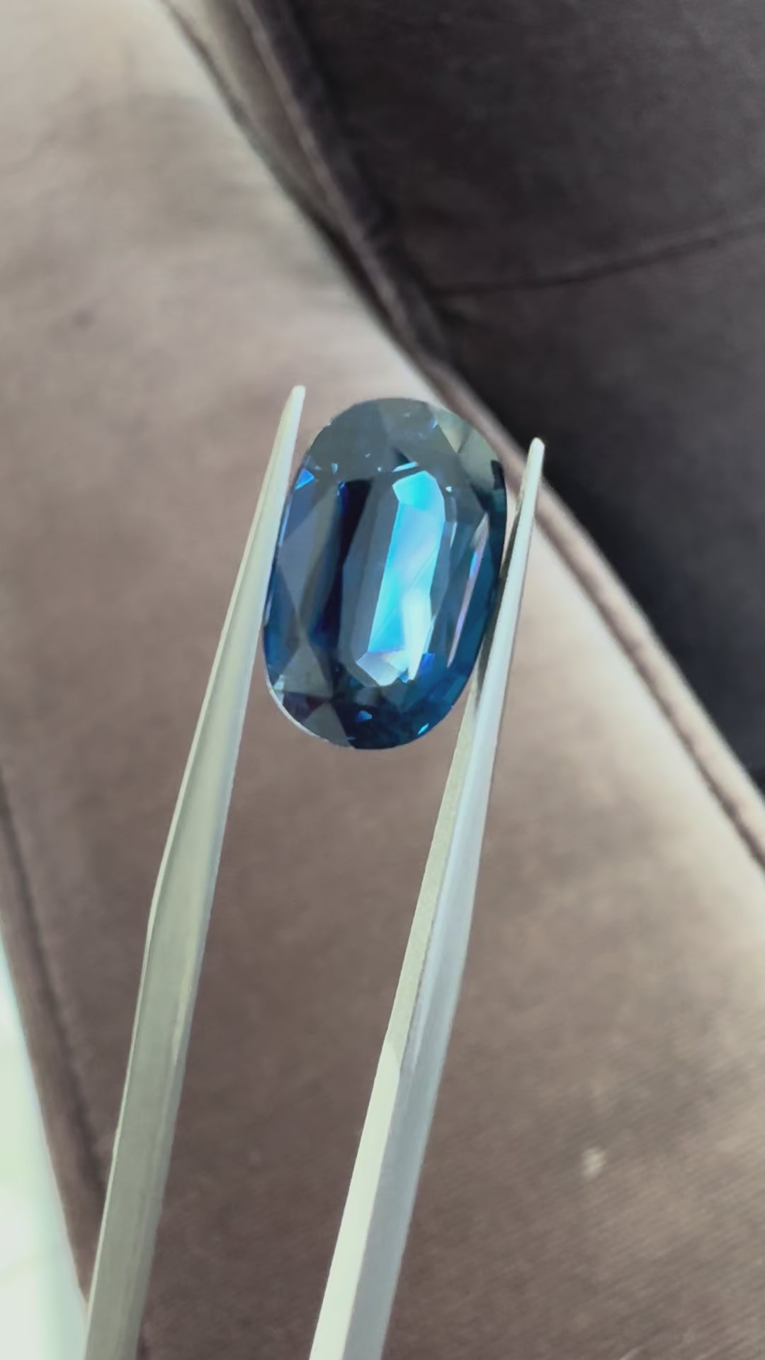 One (1) natural, oval-shaped, modified brilliant cut sapphire: