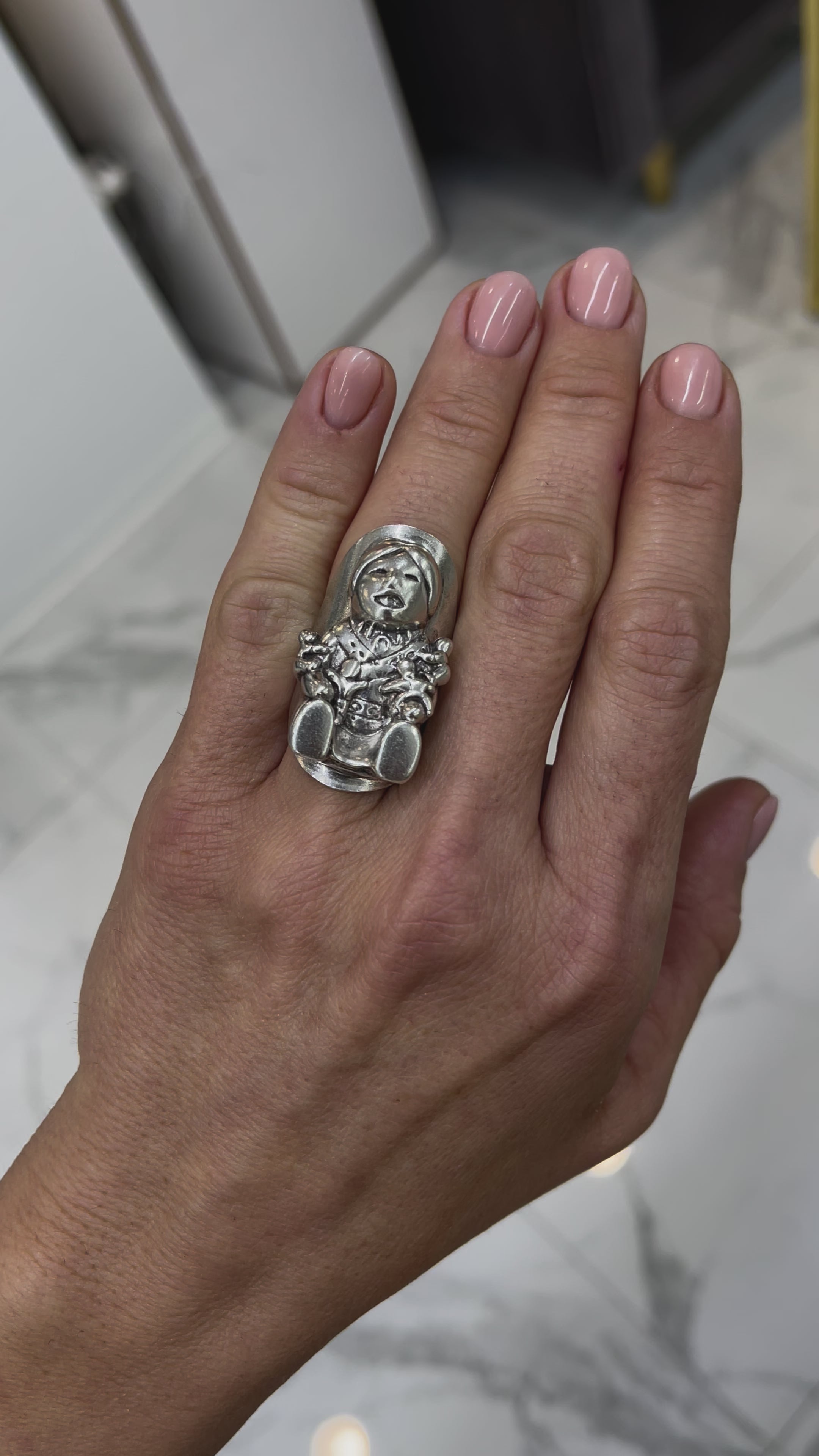925 Sterling Silver Kachina Doll Native American Southwestern Cocktail Ring
