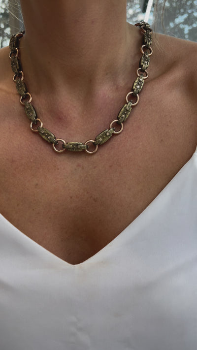 Victorian Bronze Necklace, 18K Gold Heavy Link Chain Necklace, Chunky One Of A Kind Antique Jewelry, Handmade Jewelry