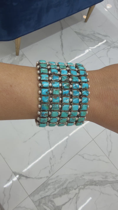 Vintage Sterling Silver Native American Five Row Turquoise Cuff Bracelet