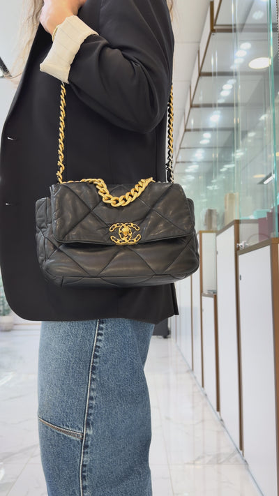 Chanel 19 Small Flap Quilted Lambskin Leather Black Metal Hardware Shoulder Bag
