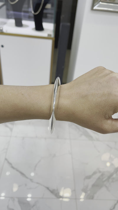 Silver bangle bracelet. Engraved with "925". The "Tiffany & Co." trademark (or hallmark) can also be found on the item.