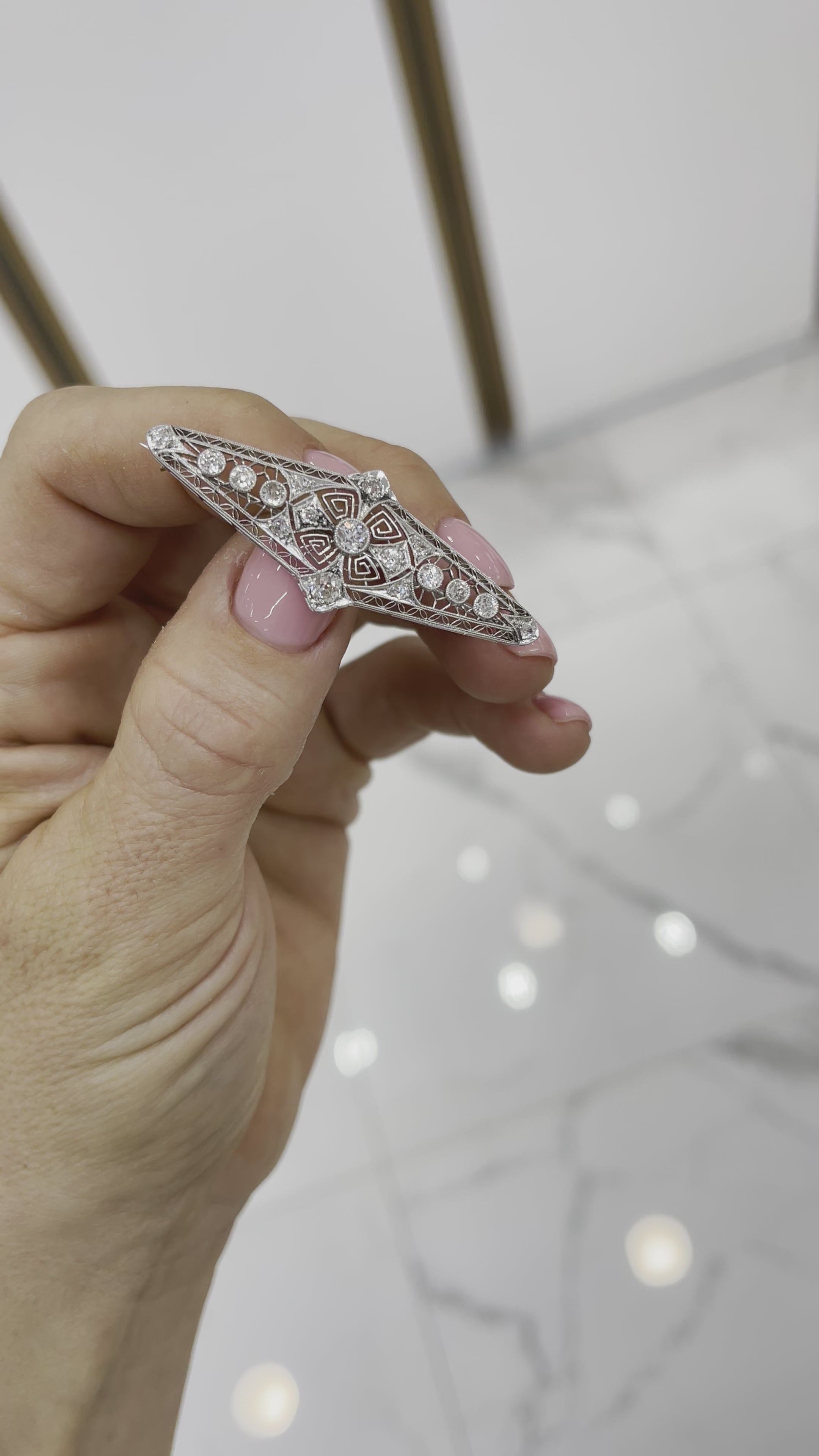 Ladies filigreed vintage 900 platinum diamond brooch.
