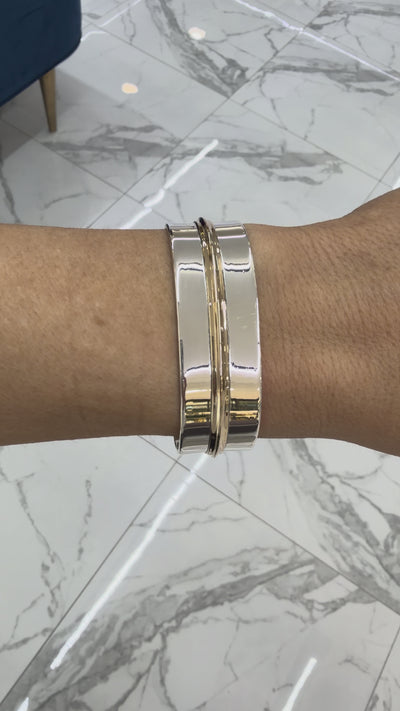 James Avery 14K Yellow Gold 925 Silver Sleek Central Gold Cuff Bangle Bracelet