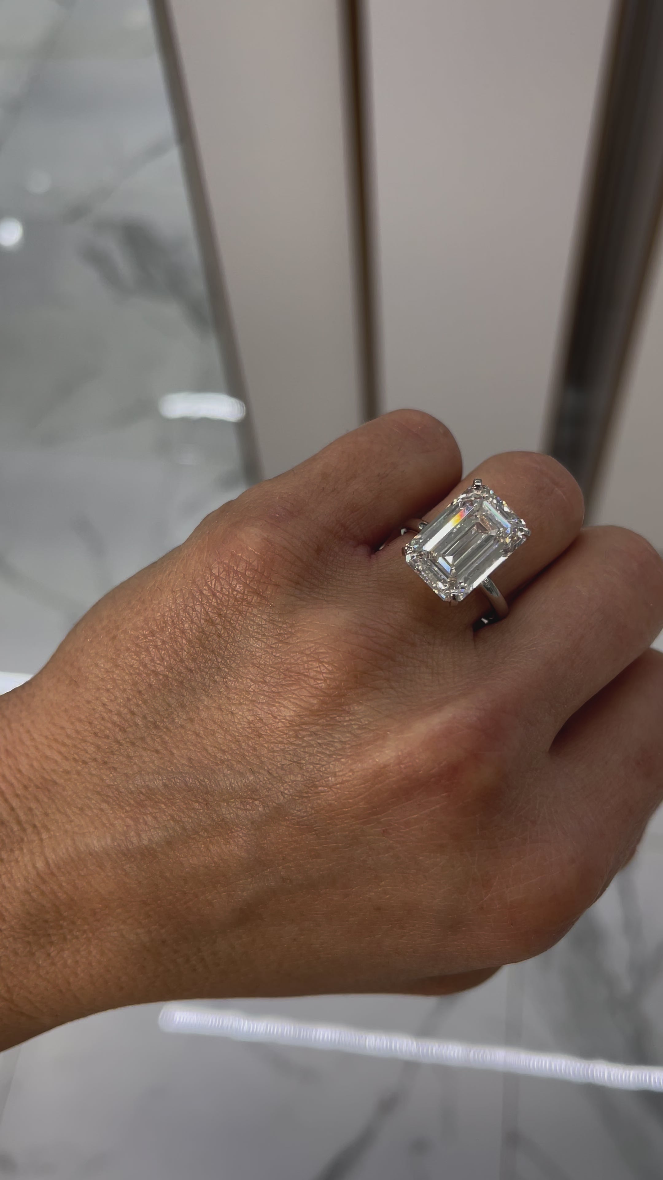Ladies 14K White Gold Igi 10.18ct G VS2 Emerald Cut Lab Grown Diamond Solitaire Engagement Ring