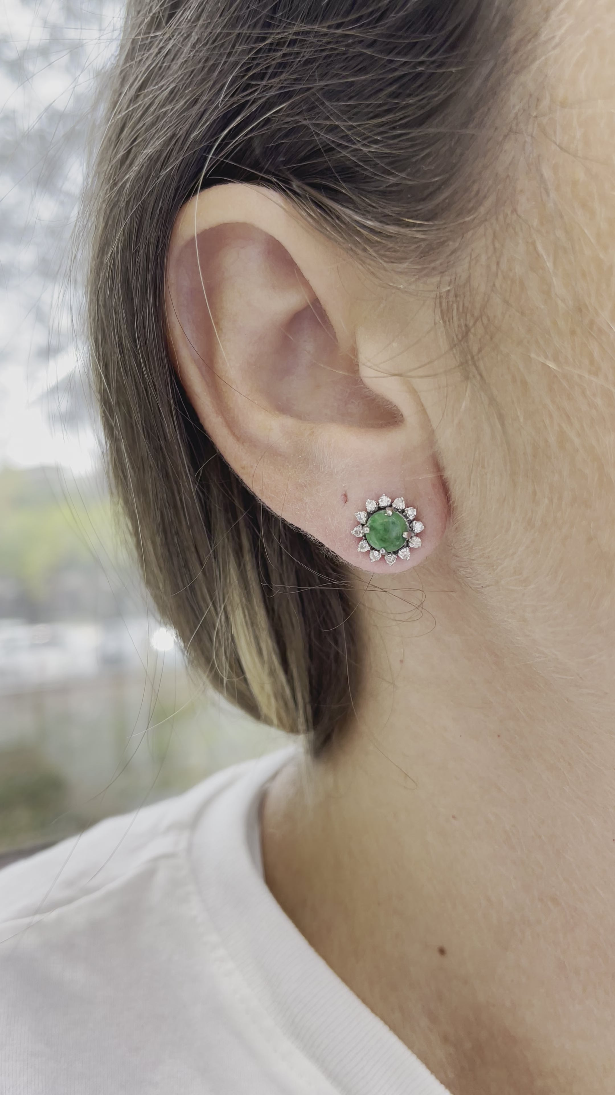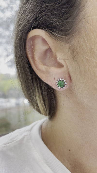 Vintage Ladies 14K White Gold Jade Halo Diamond Stud Earrings
