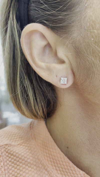 Ladies 18K White Gold 2.01ct. Princess Cut Diamond Stud Earrings