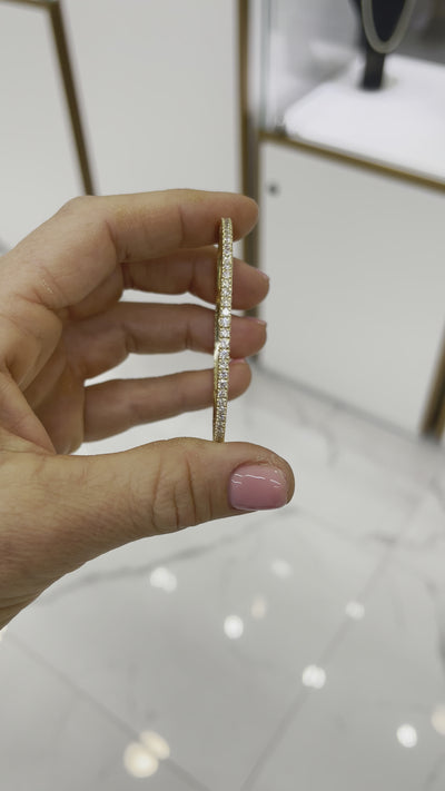 Lady's 18K yellow gold diamond bangle, tennis bracelet. The bracelet is 2.50mm thick and measures approximately 6.75 inches in length and weighs a total of 9.86 grams. Engraved with "18K". Pre-owned in excellent condition. Might show normal signs of wear from normal use