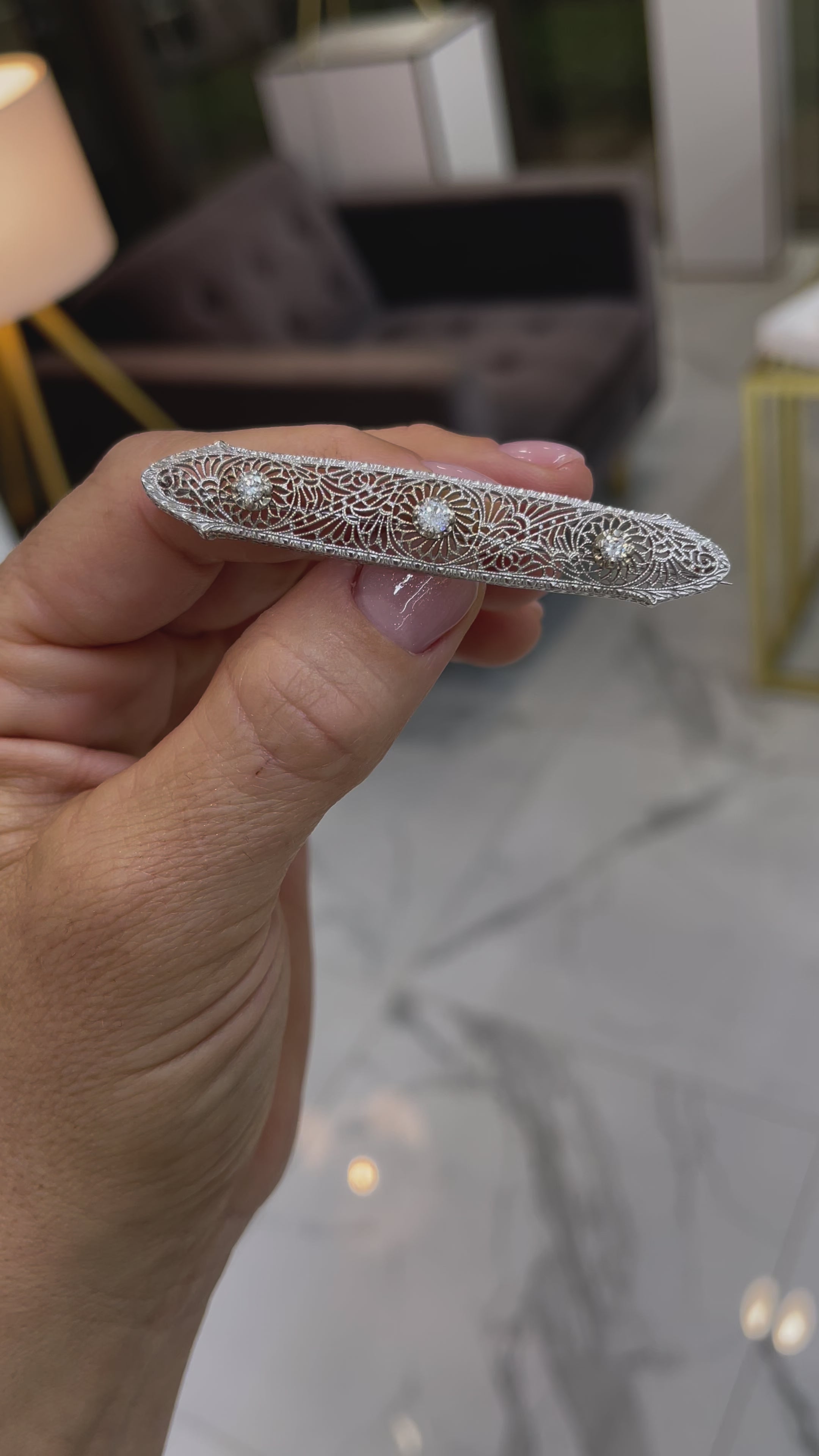 Ladies Antique 14K White Gold Natural Round Diamond Filigree Brooch