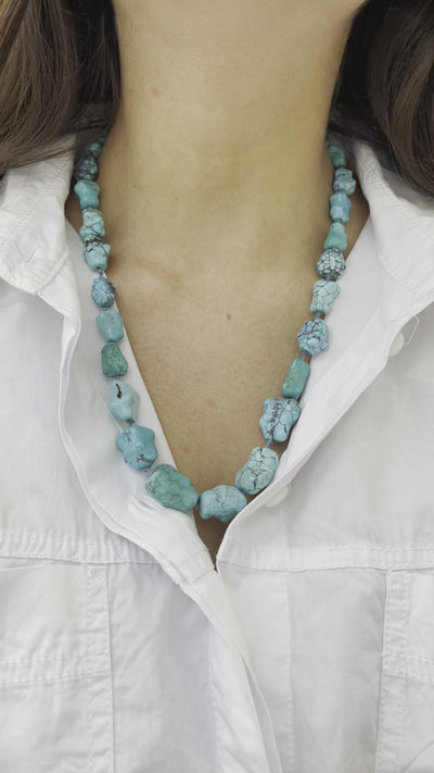 Ladies Vintage 18K Yellow Gold Natural Turquoises Tumbled Beads Chain Necklace