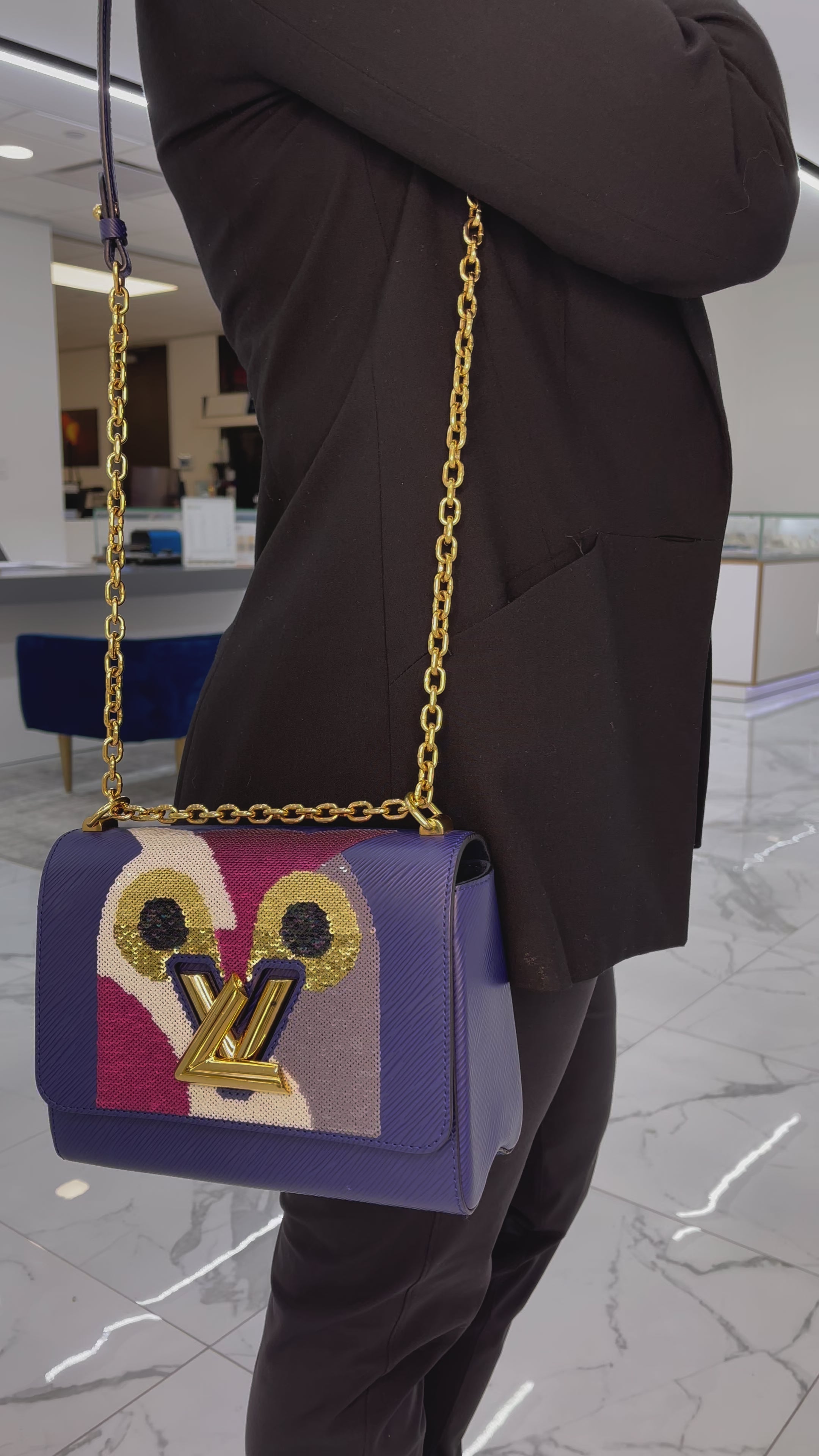 Louis Vuitton Twist MM Navy Leather & Sequin Night Bird Ladies Handbag W/Box