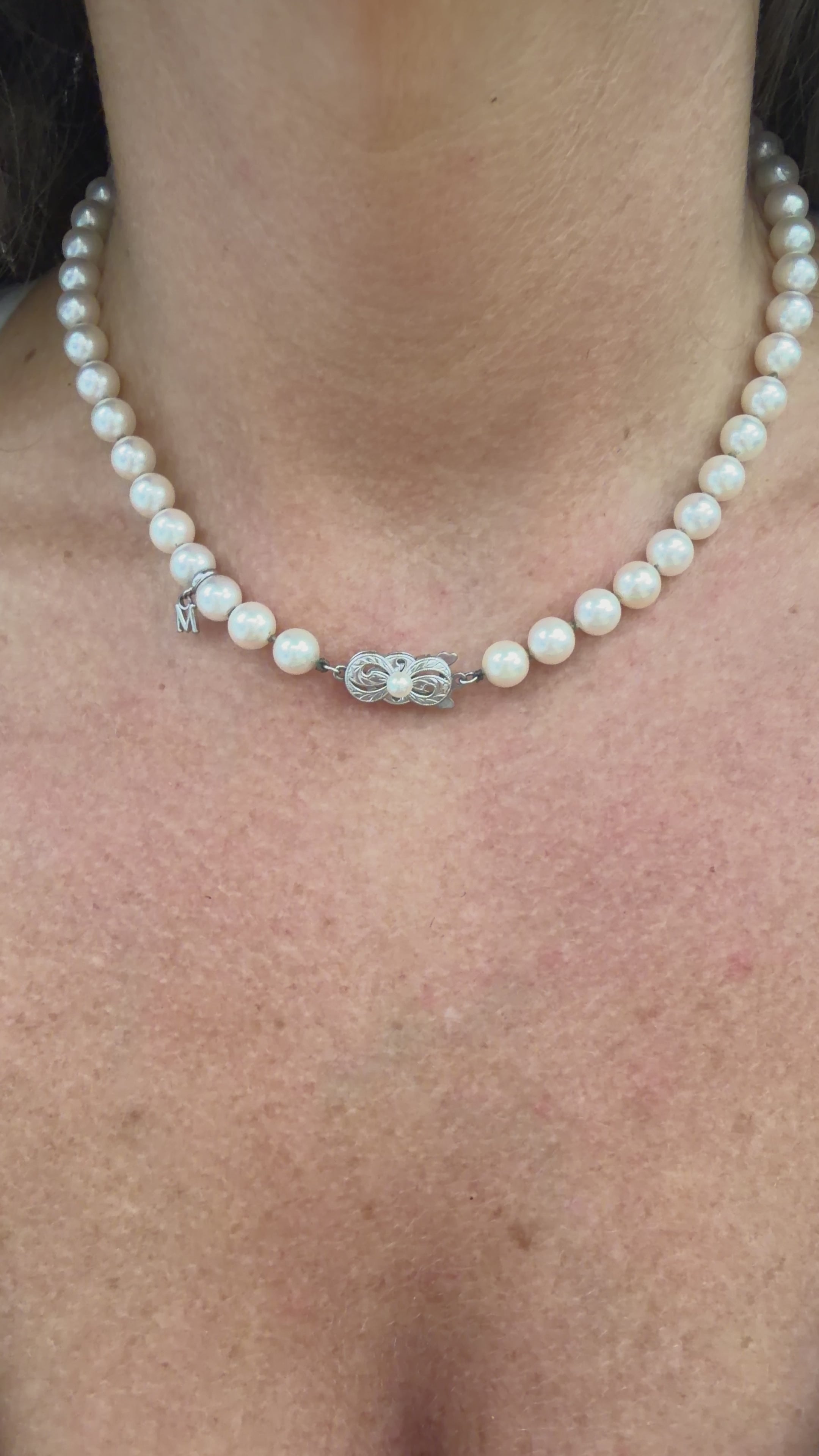 Mikimoto Classic 18K White Gold Akoya Cultured Pearl Strand Chain Necklace