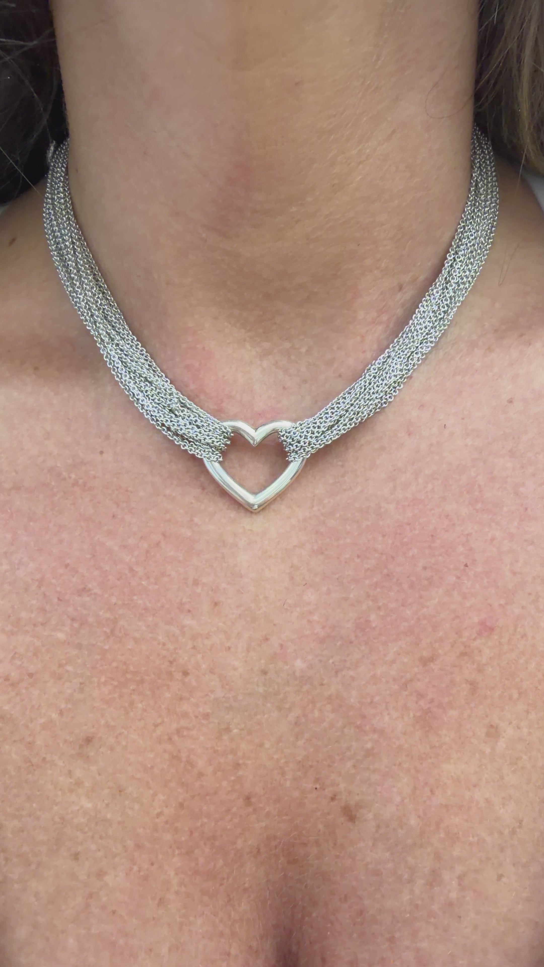 Tiffany & Co. Multi Strand Chain Mesh Heart Toggle Silver 925 Pendant Necklace